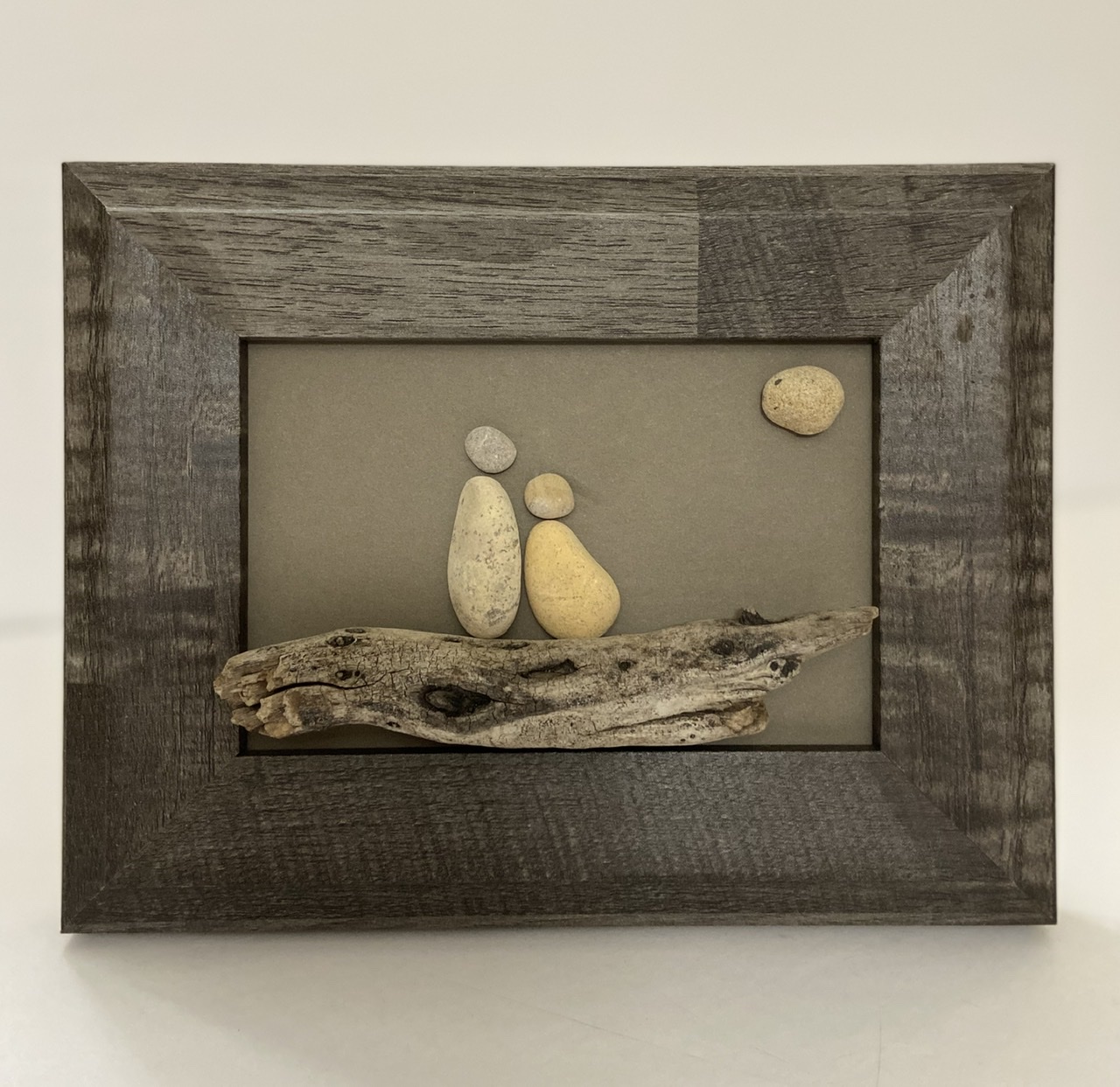 My inspiration comes from my love of natural items. Its a life long hobby of mine to collect rocks, pebbles, driftwood and other natural items from beaches and waterfronts. My work includes items primarily from Lake Winnipeg but I also use materials from different parts of Canada and the world when we travel. I consider myself an natural materials artist. My work is a 3D multi media art style that come in shadow boxes and wood frames of varying sizes. They depict scenes of people, families and nature. They are very striking and they evoke emotions and make people smile! View all posts by pebbleartbydenise