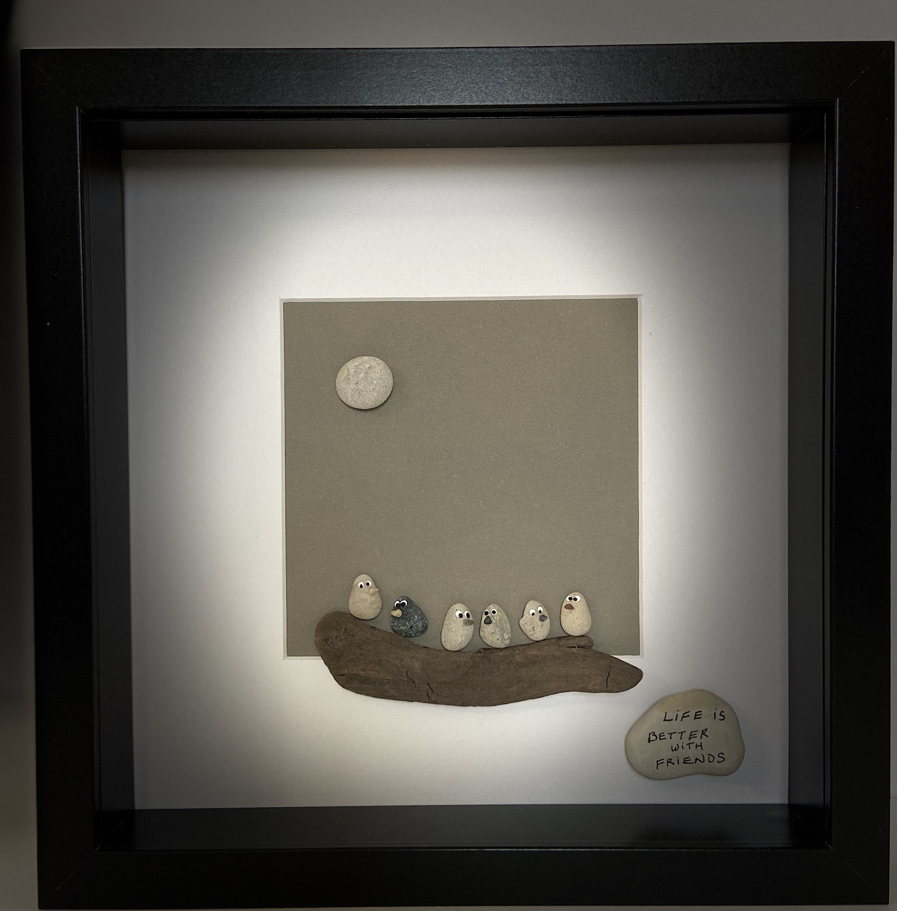 My inspiration comes from my love of natural items. Its a life long hobby of mine to collect rocks, pebbles, driftwood and other natural items from beaches and waterfronts. My work includes items primarily from Lake Winnipeg but I also use materials from different parts of Canada and the world when we travel. I consider myself an natural materials artist. My work is a 3D multi media art style that come in shadow boxes and wood frames of varying sizes. They depict scenes of people, families and nature. They are very striking and they evoke emotions and make people smile! View all posts by pebbleartbydenise