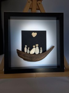 My inspiration comes from my love of natural items. Its a life long hobby of mine to collect rocks, pebbles, driftwood and other natural items from beaches and waterfronts. My work includes items primarily from Lake Winnipeg but I also use materials from different parts of Canada and the world when we travel. I consider myself an natural materials artist. My work is a 3D multi media art style that come in shadow boxes and wood frames of varying sizes. They depict scenes of people, families and nature. They are very striking and they evoke emotions and make people smile! View all posts by pebbleartbydenise
