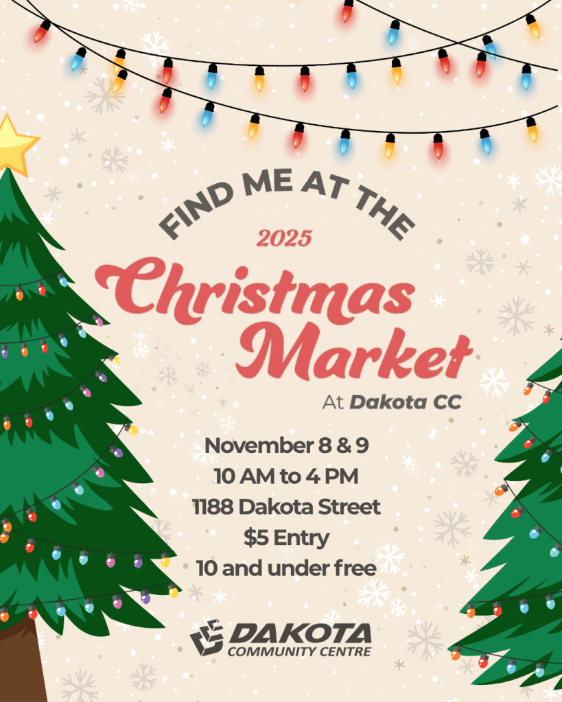 Dakota Community Centre Christmas Market. Saturday Nov 8th ( 10-4) & Sunday Nov 9th ( 10-4). 1188 Dakota St. $5.00 entrance fee per day.