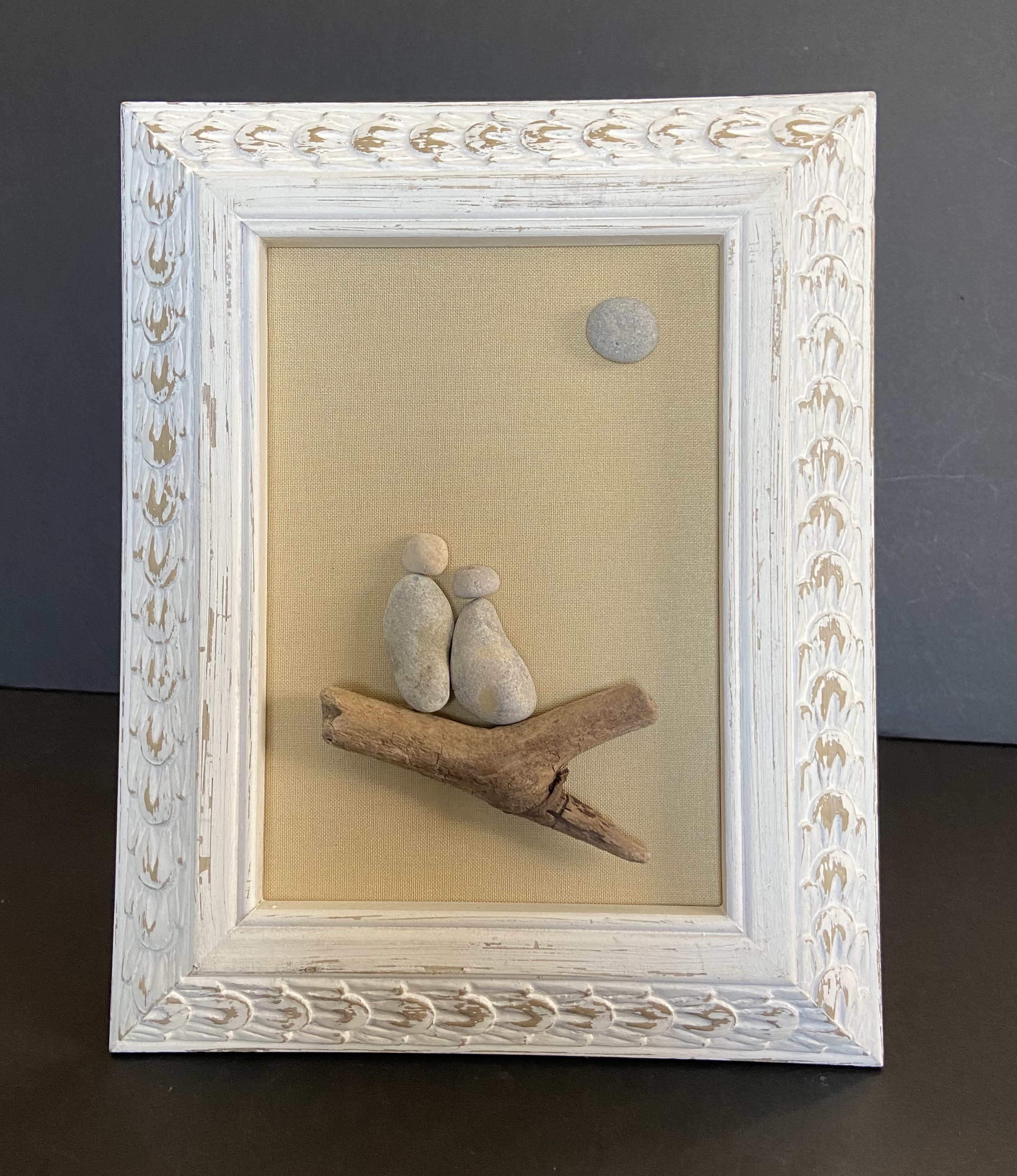 Couple/ white distressed wood frame