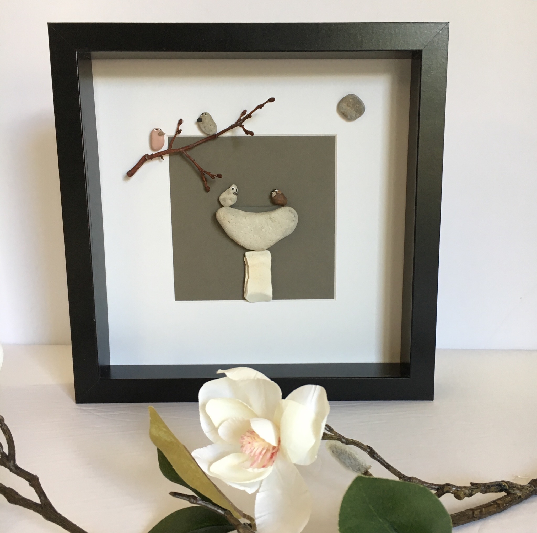 Mini Pebble Art 5”x5” wood shadow boxes