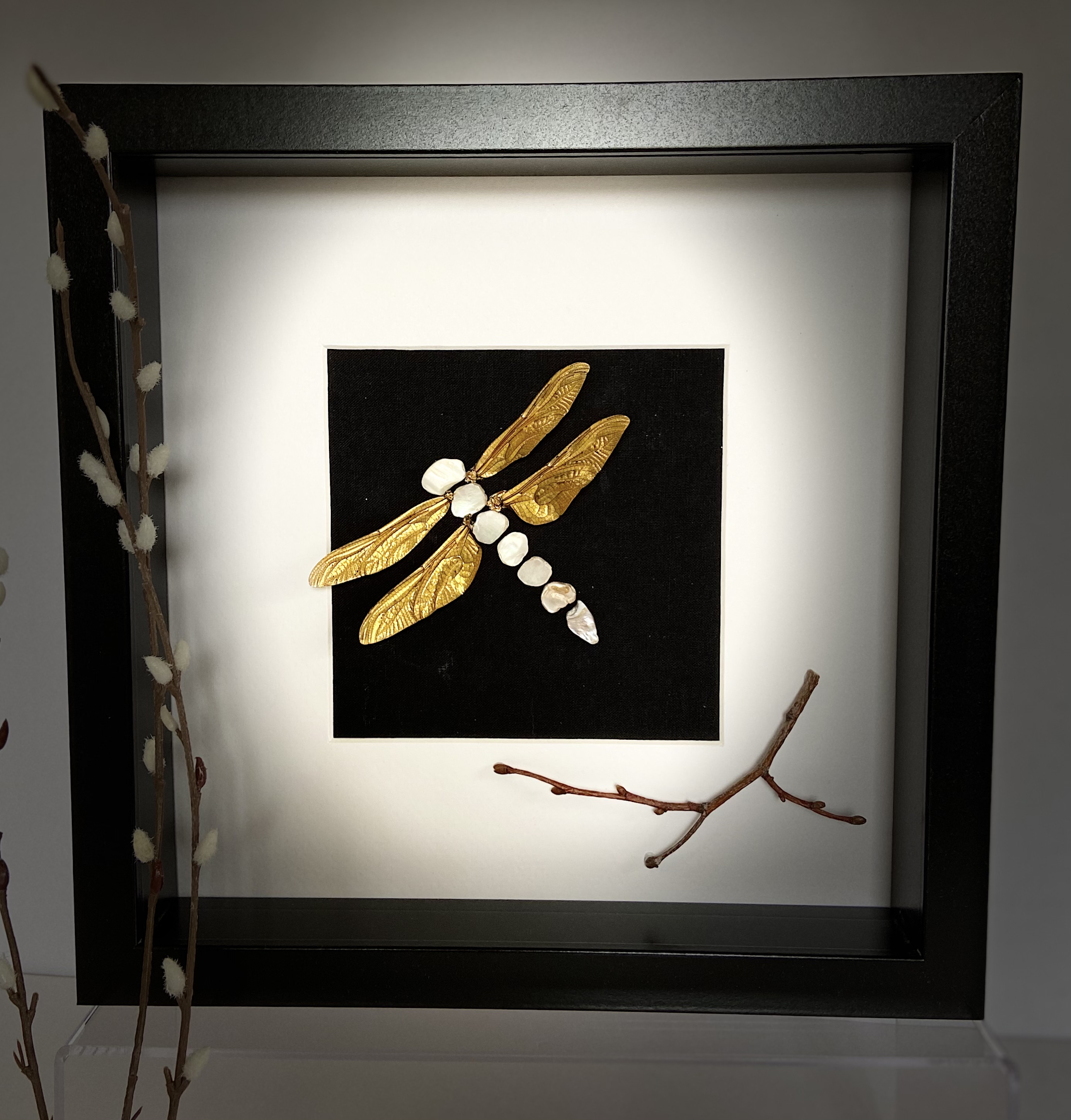 Dragonfly gold wings . 10”x10”
